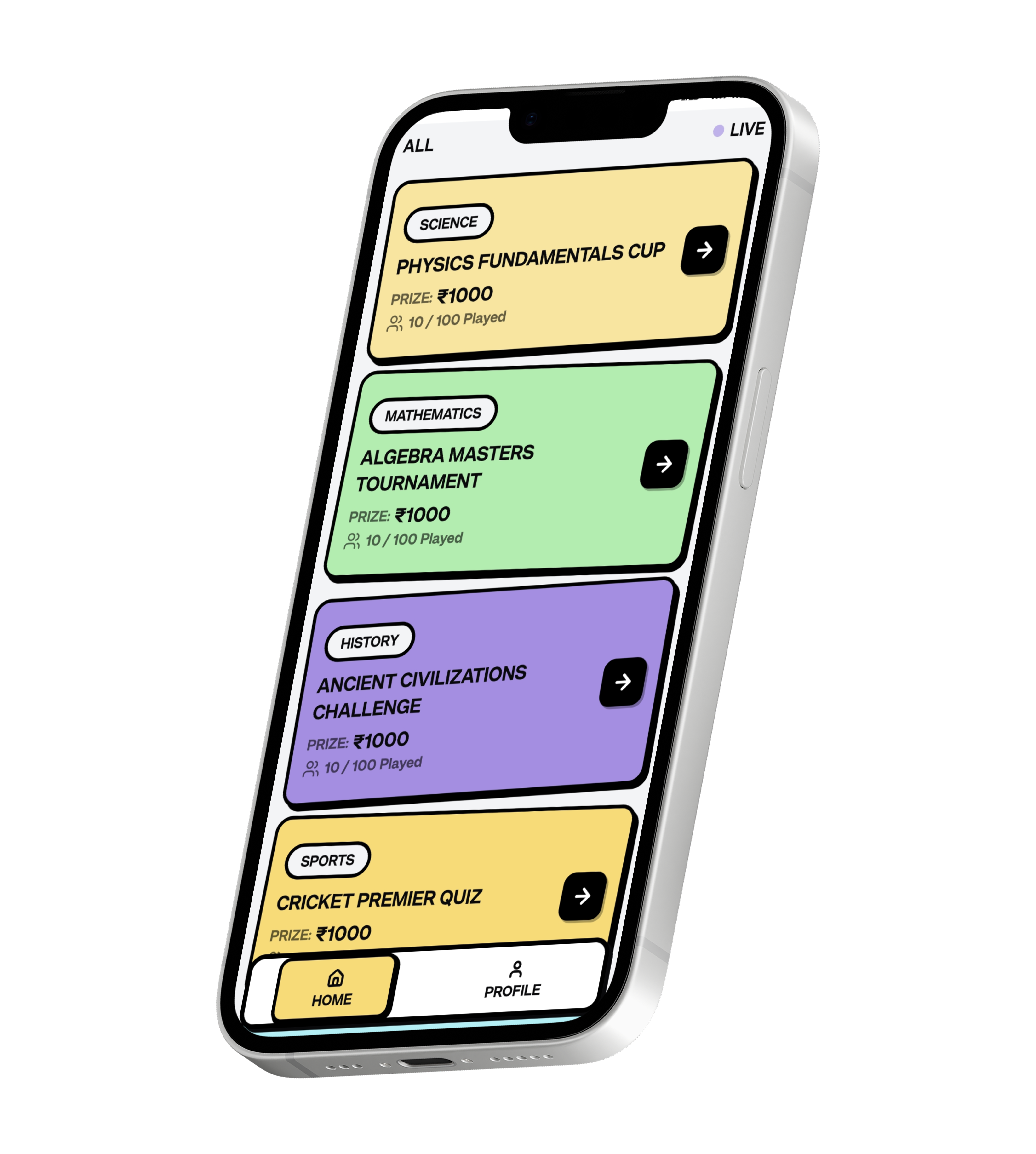 Play quizzes on topics you love โ Science, Sports, Movies, History and more.